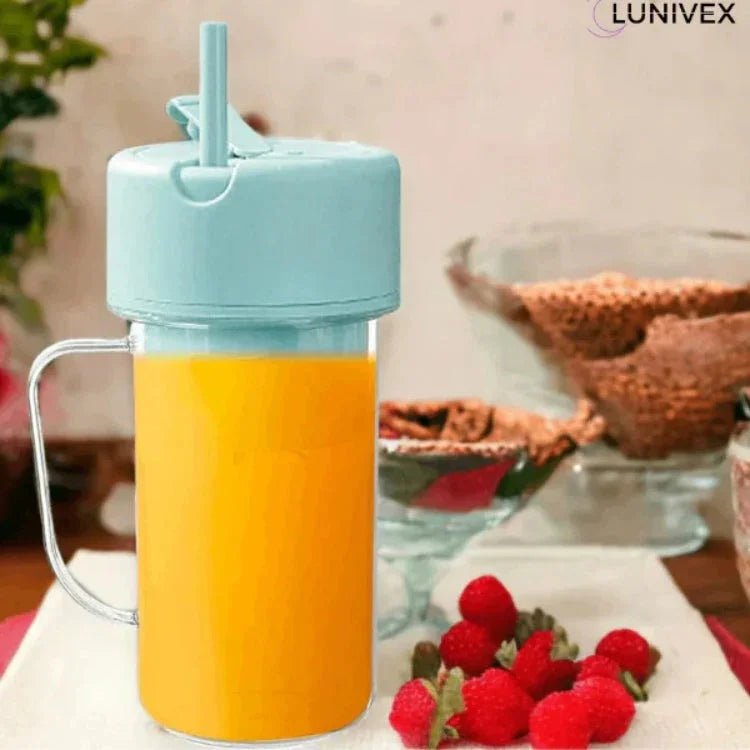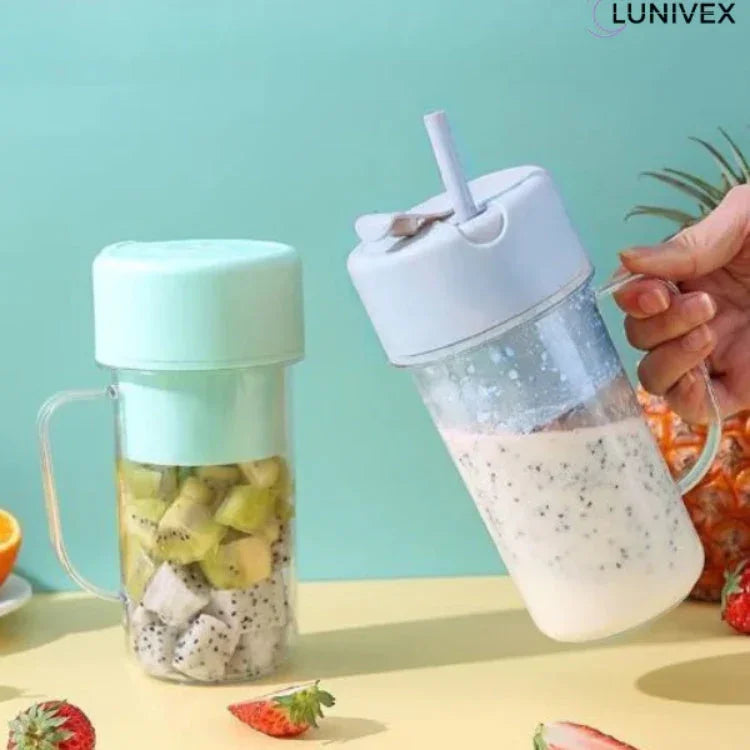 Disfruta de tus batidos, smoothies y jugos favoritos en cualquier lugar con nuestra batidora portátil con pajita. Compacta, ligera y recargable, es perfecta para la oficina, gimnasio o viajes. ¡Solo agrega tus ingredientes, mezcla y disfruta!