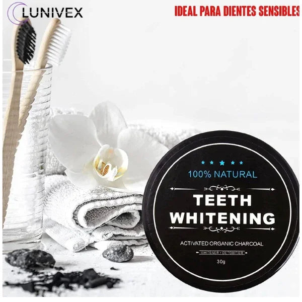 El Blanqueador Dental Lunivex combina carbón activo vegano con un cepillo de bambú ecológico, ofreciéndote una limpieza profunda que ayuda a eliminar manchas superficiales y mantener tus dientes radiantes. Su fórmula suave protege el esmalte y las encías, mientras que el cepillo de bambú biodegradable cuida tanto tu boca como el planeta.