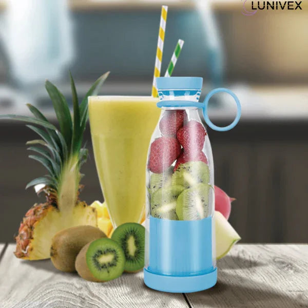Disfruta de tus batidos, smoothies y jugos favoritos en cualquier lugar con nuestra batidora portátil. Compacta, ligera y recargable, es perfecta para la oficina, gimnasio o viajes. ¡Solo agrega tus ingredientes, mezcla y disfruta!