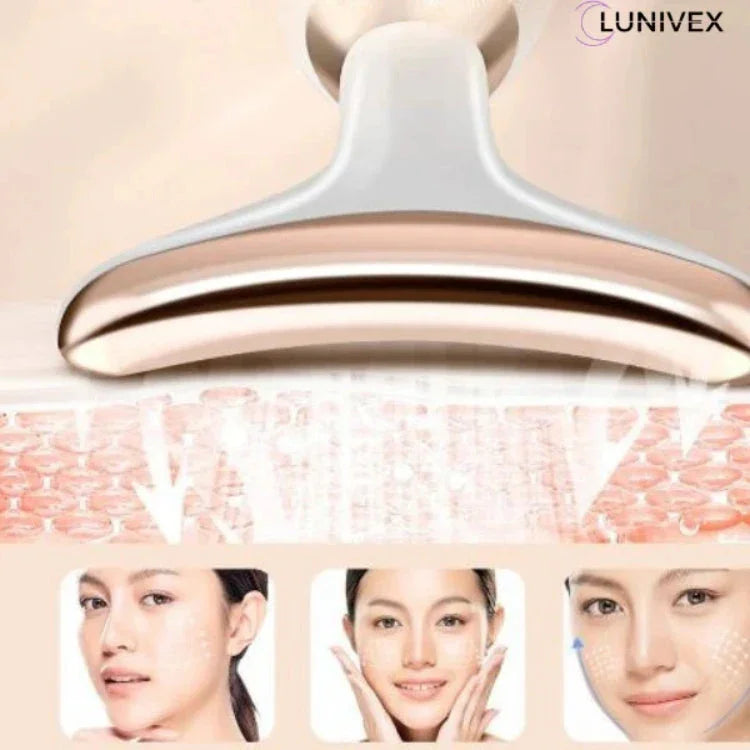 Dile adiós a la tensión y dale a tu piel el cuidado que merece. Este elegante masajeador de cuello con diseño ergonómico y cabezal en forma de “T” está especialmente diseñado para adaptarse a la zona del cuello, papada y rostro.