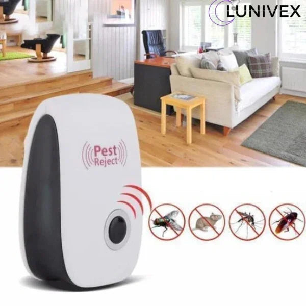 El Pest Reject Lunivex es un repelente ultrasónico que ahuyenta eficazmente mosquitos, cucarachas, ratones y otras plagas sin necesidad de trampas ni venenos. Solo conéctalo y su tecnología de ondas ultrasónicas mantendrá tu hogar limpio, seguro y libre de intrusos.